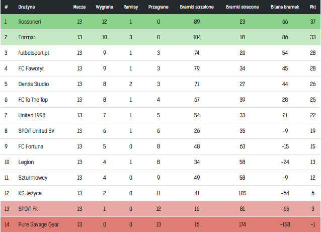 Tabela końcowa sezonu halowego Zima 2025/26